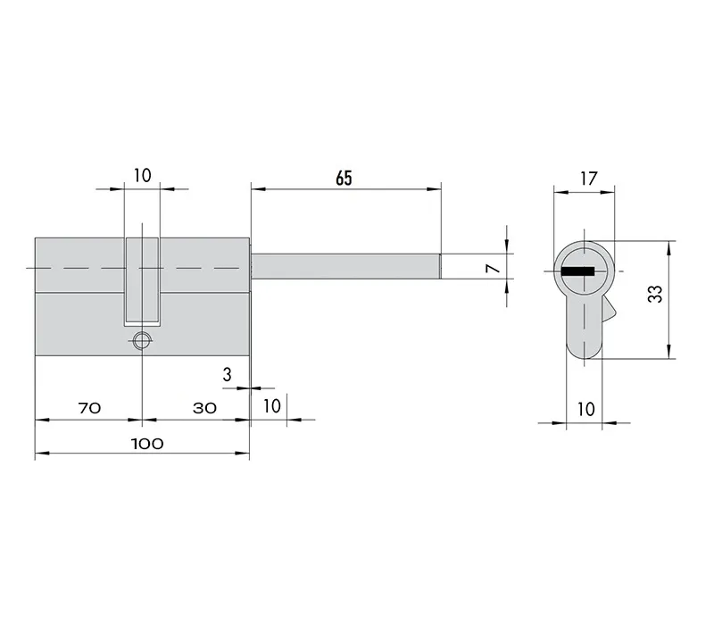 CISA Цилиндр серии RS3 S ключ-шток 100мм (70х30)